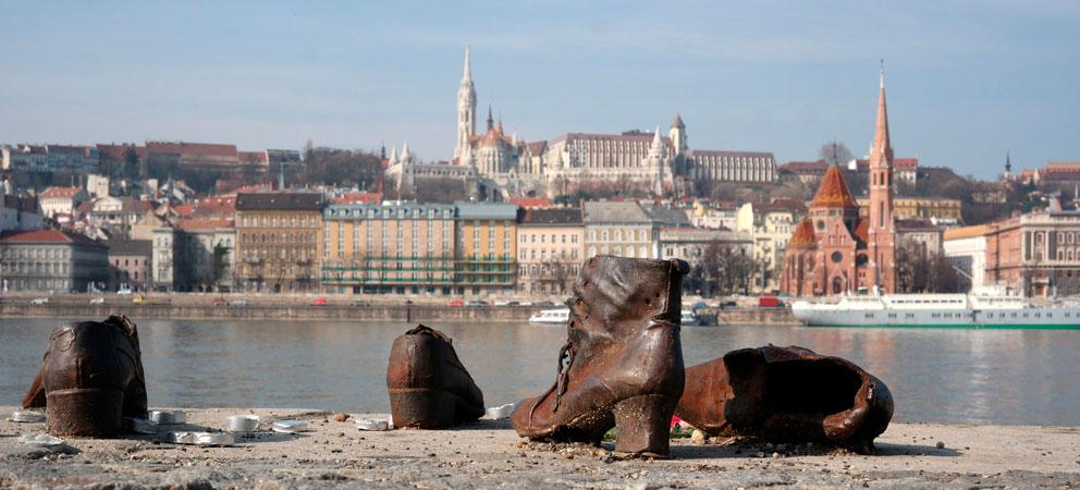 • Los zapatos del Danubio: Obra creada en homenaje a los Judíos que debían descalzarse antes de ser asesinados y arrojados al río durante la Segunda Guerra Mundial.