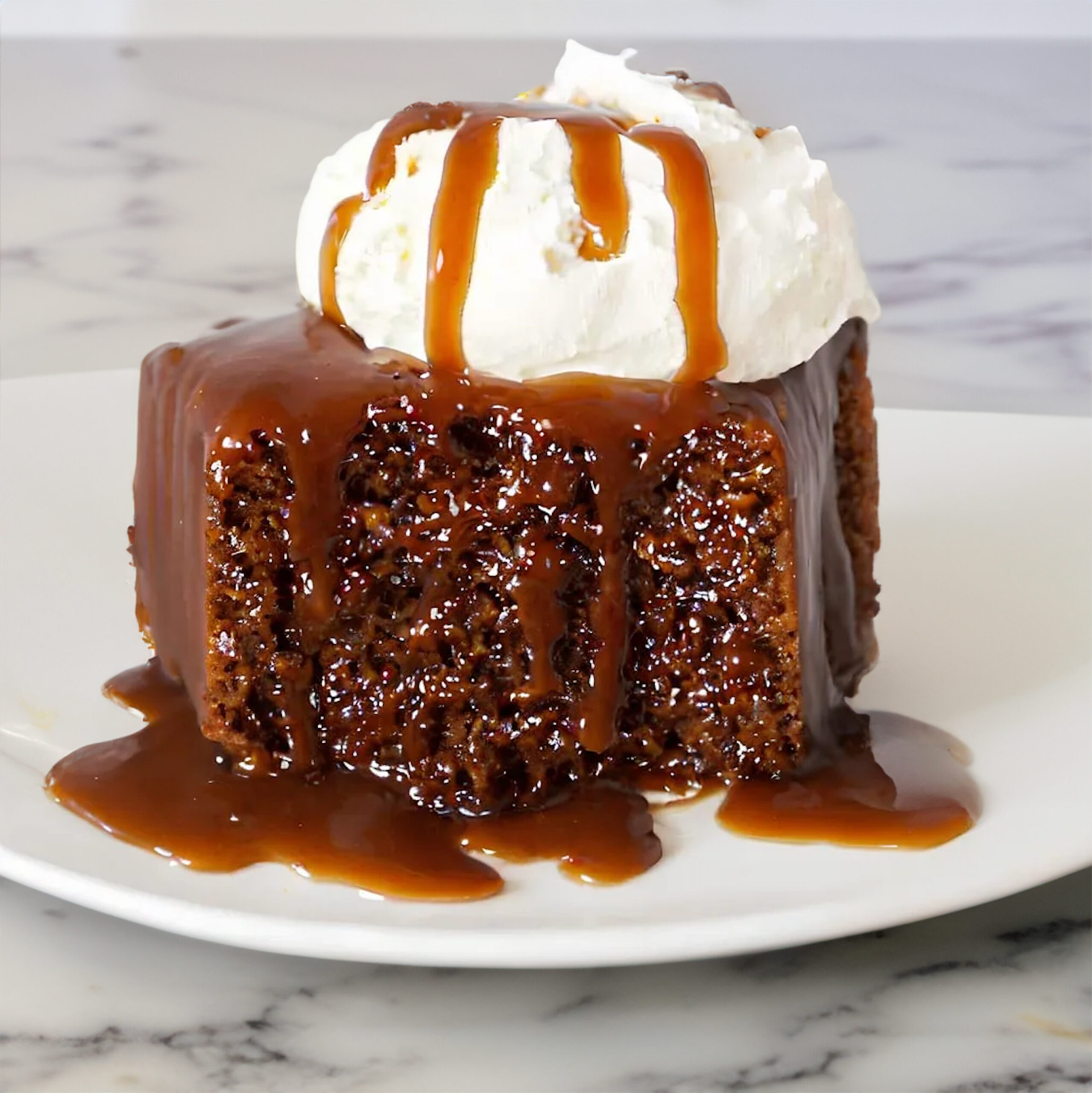 - Sticky Toffee Pudding: Un bizcocho húmedo y denso, preparado con dátiles y cubierto con una salsa de toffee (caramelo espeso) caliente. Se sirve a menudo acompañado de helado de vainilla o crema.